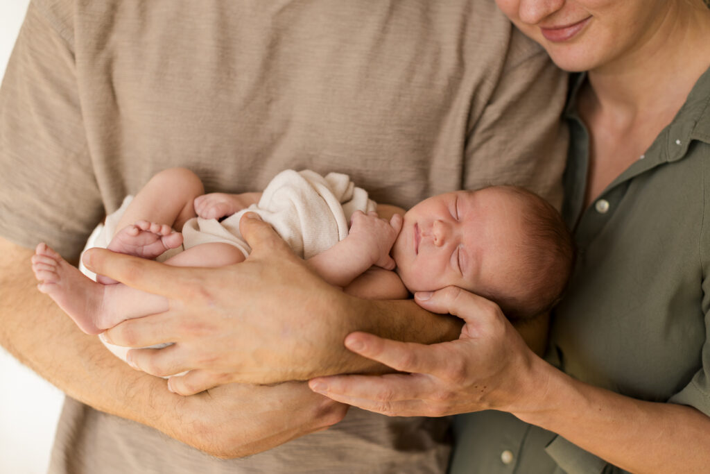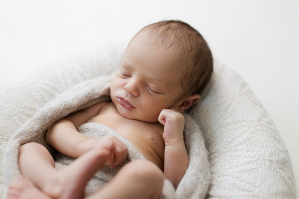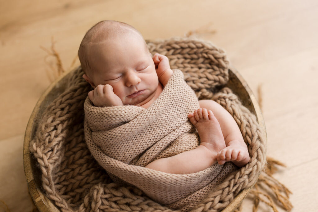 Die ersten zwei Wochen sind ideal, weil die Babys noch ruhig schlafen und sich eng zusammenrollen. Ich gestalte mit einigen liebevoll ausgewählten Accessoires eine kleine Studioecke bei euch zu Hause, sodass sich alle wohlfühlen und ein entspanntes Shooting möglich ist.